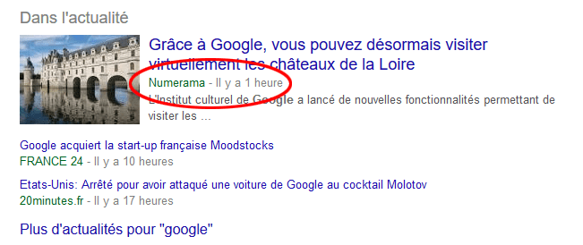 Dans ce cas, les évènements ou actualités sont mis en valeur par rapport au reste des résultats.