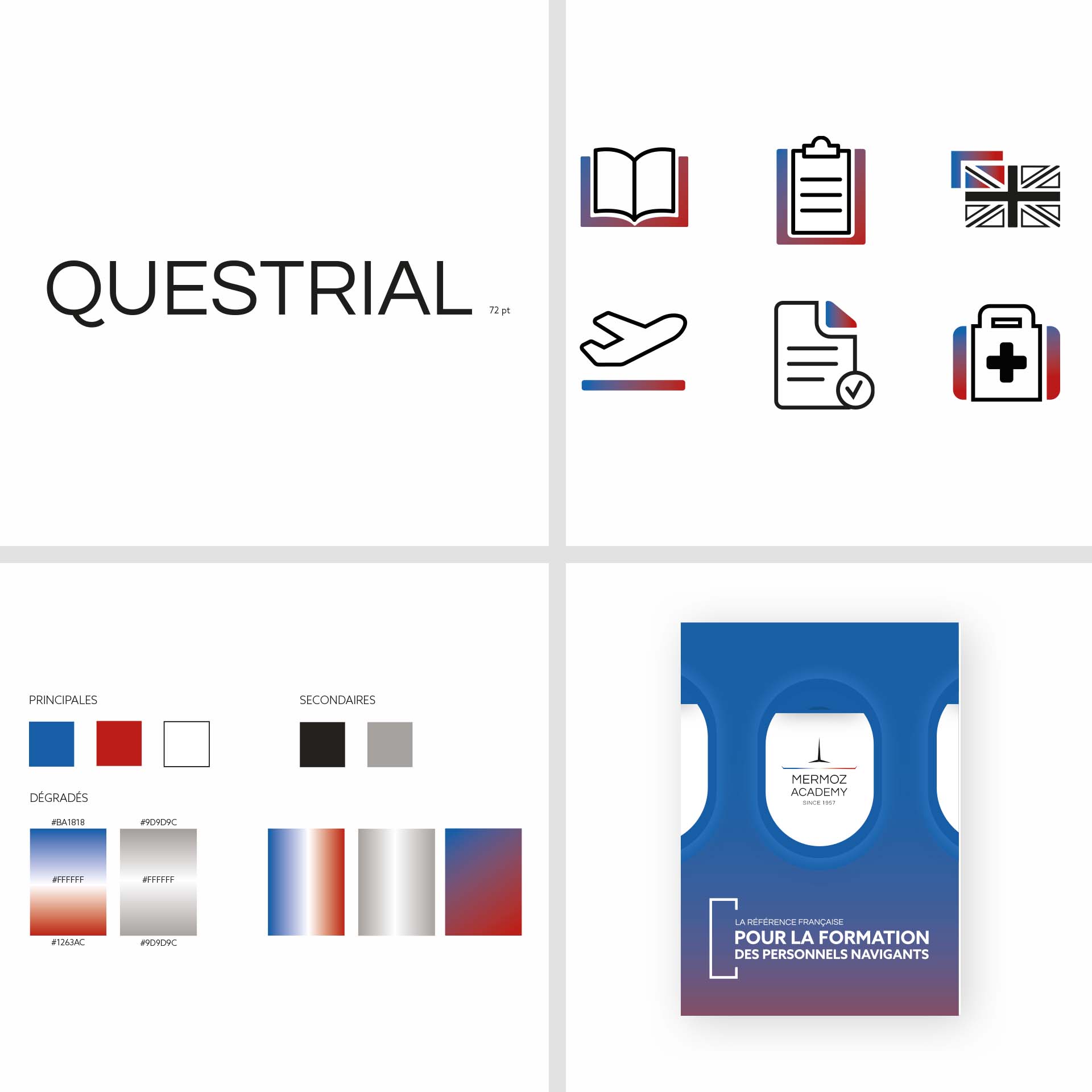 Dans ce travail d'identité graphique, ce sont les valeurs et les origines de l'École MERMOZ ACADEMY qui sont portées.
